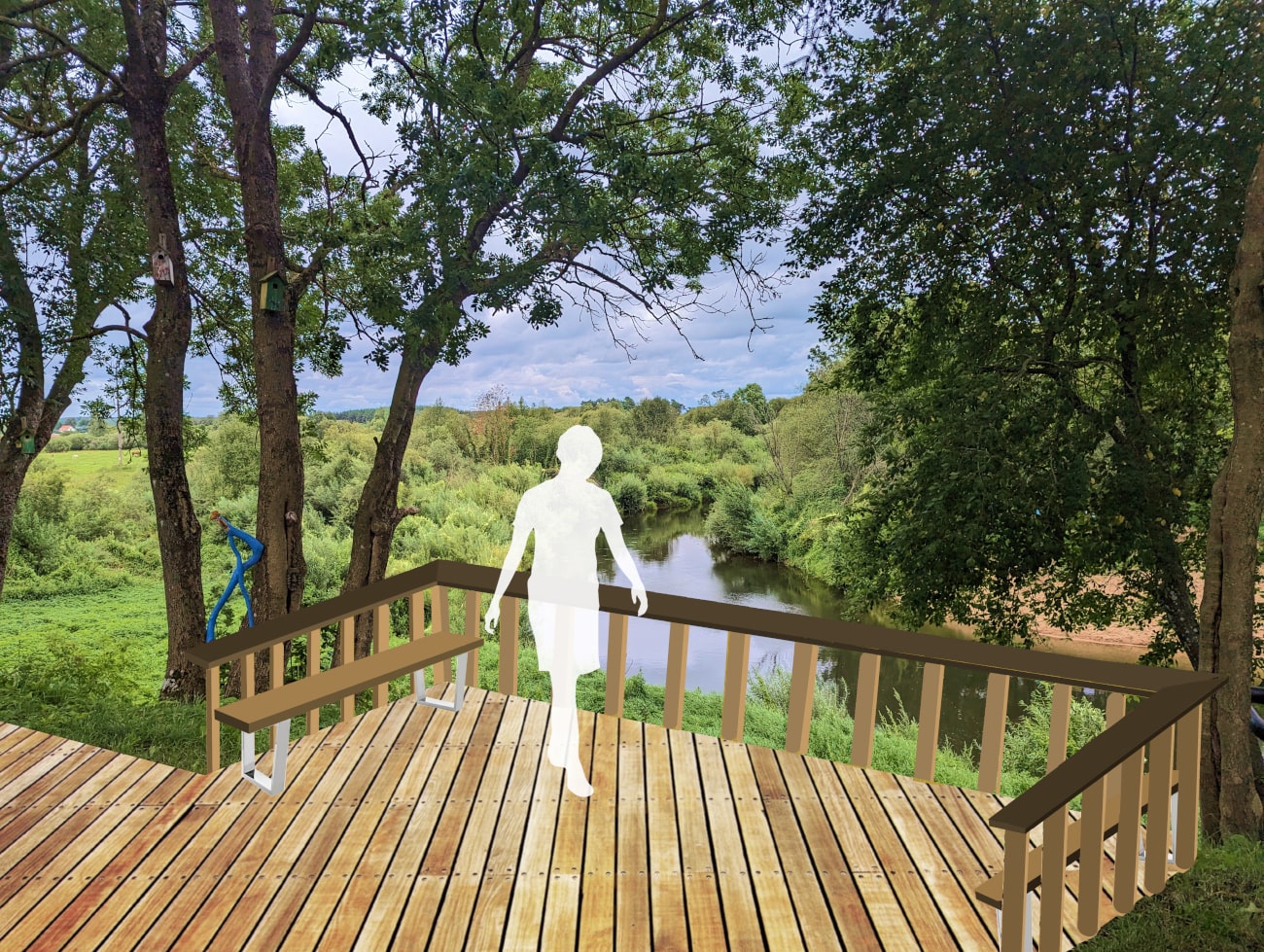 Ant upės šlaito įrengtose terasėlėse bus galima prisėsti ant patogių suoliukų bei pasisupti sūpynėse su vaizdu į Minijos slėnį.